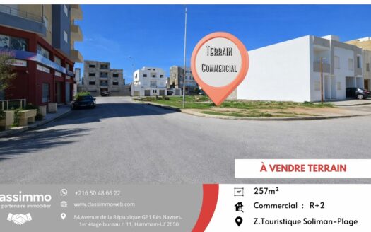 Terrain de coin Com Résid 257 m2 à 650 TND l...