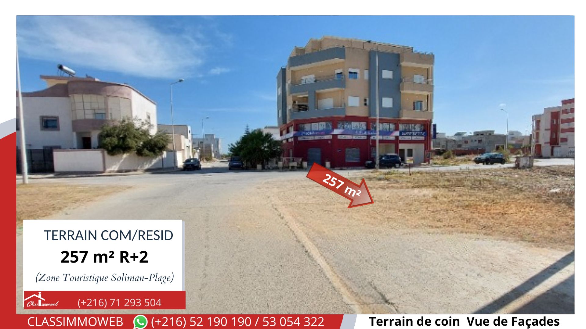 On est ravis de vous présenter ce magnifique terrain de coin de 257 m2, offrant un potentiel incroyable pour vos projets commerciaux et résidentiels. Situé dans la zone touristique de Soliman Plage, ce terrain est prêt à accueillir votre vision.